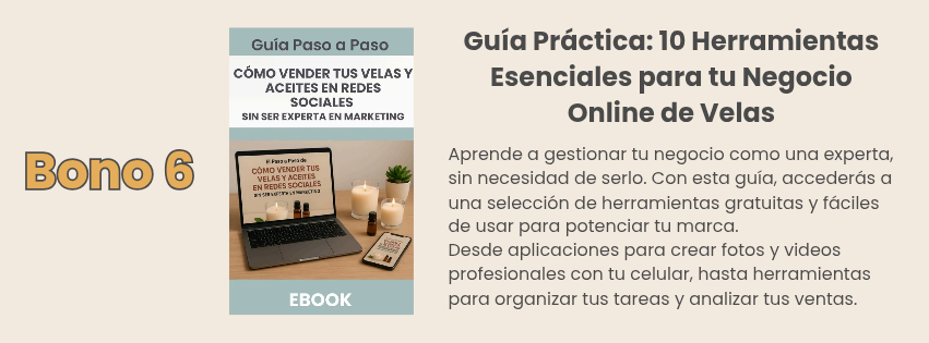 ¡Por supuesto! De nada sirve crear el producto perfecto si nadie lo conoce. Este libro te enseña no solo a crear velas, sino a venderlas. Aprenderás a crear una marca, tomar fotos profesionales con tu celular, usar las redes sociales y, lo más importante, a convertir tu hobby en una fuente de ingresos constante.